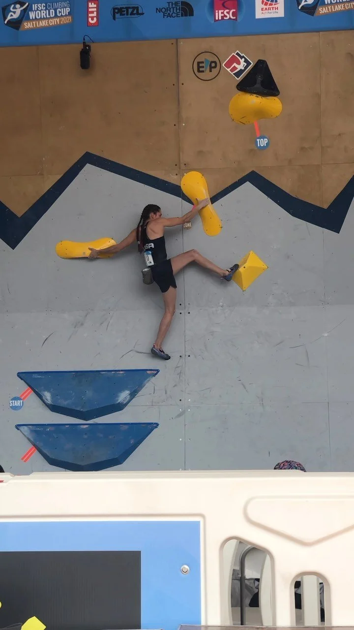 Kyra is a 28 year old professional climber and Olympian based out of Salt Lake City, UT. Kyra was one of 4 athletes from the US to compete in Sport Climbing’s debut at the Tokyo 2020 Olympics. She’s motivated by goals in both national and international competitions as well as outdoor climbing. She’s known for her regimented training routine and explosive style on the wall. Outside of climbing, Kyra loves to play beach volleyball, do puzzles, hang with her two cats, and find new specialty coffee shops.